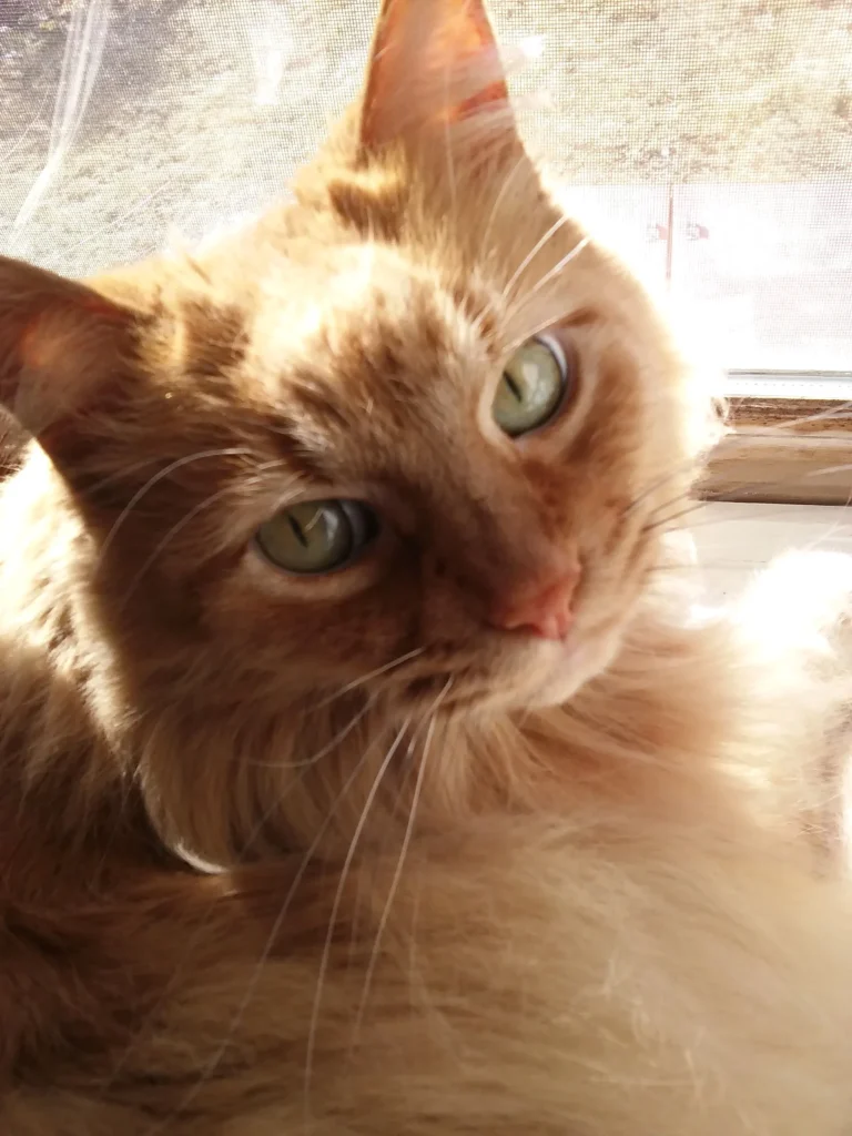 Charlie is not very social he requires a tricked scooping him up to give him love but he is very loving. He observes from a distance but when coming home he greets us often at the door with the dog. Charlie has much concern over our other pets. Usually when the other pets have been into trouble Charlie is always nearby looking at them like “I told you so.”