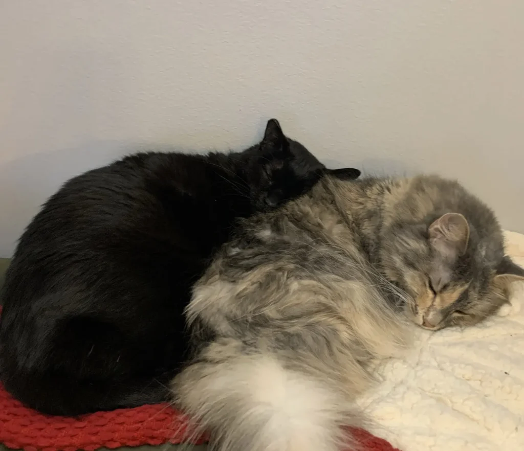 Eddy was found outside in a pile of snow by my friend who was allergic so I then took him home and have had him since. I then adopted Luna from the Janesville Humane Society as a black Friday deal.