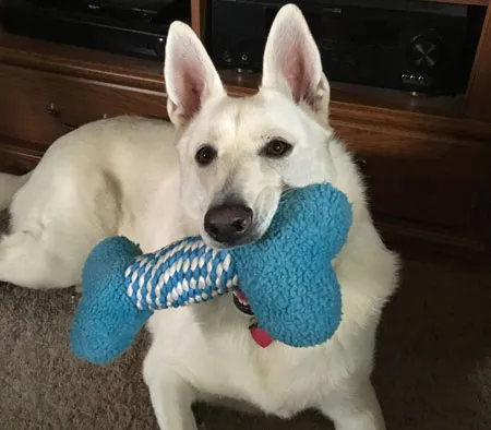 I found Lacey on Facebook when she was a puppy. I had a White German Shepard when I was a kid so my favorite breed is the German Shepard. We already had two cats so my mom said no more animals. I took my mom over to the house she was at and let my mom hold her and it was love at first sight.